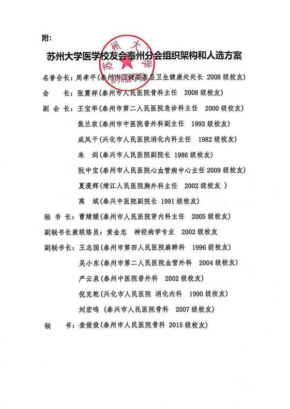 附:泰州分会的组织架构和人选方案