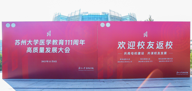 2023年11月5日,为庆祝建院111周年,苏州大学苏州医学院以“共商母校建设,共谋校友发展”为主题,举办了2023年校友返校系列活动。本次返校活动由苏州医学院与各学院、临床学院、科研机构相联动,苏州大学医学(苏医)校友会(简称“医学校友会”)与各地分会相联动,企业界校友与临床专家、科研学者相联动,开展了一系列丰富多彩的校友活动。据不完全统计,线上线下共有五千余名校友参与本次活动。